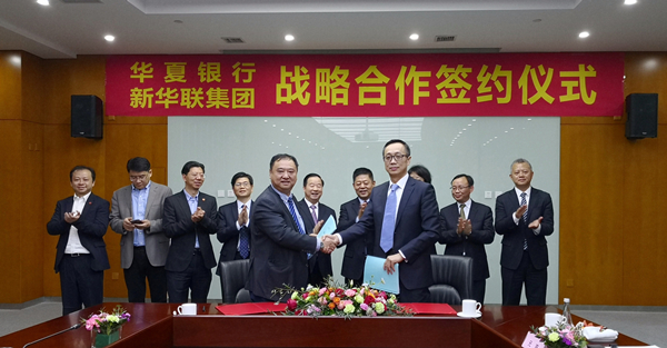 3月18日,華夏銀行與新華聯(lián)集團在北京簽訂戰(zhàn)略合作協(xié)議,華夏銀行將為后者提供總額100億元人民幣的融資服務。華夏銀行北京分行行長李大營、新華聯(lián)集團董事局主席兼總裁傅軍等參加簽約儀式。